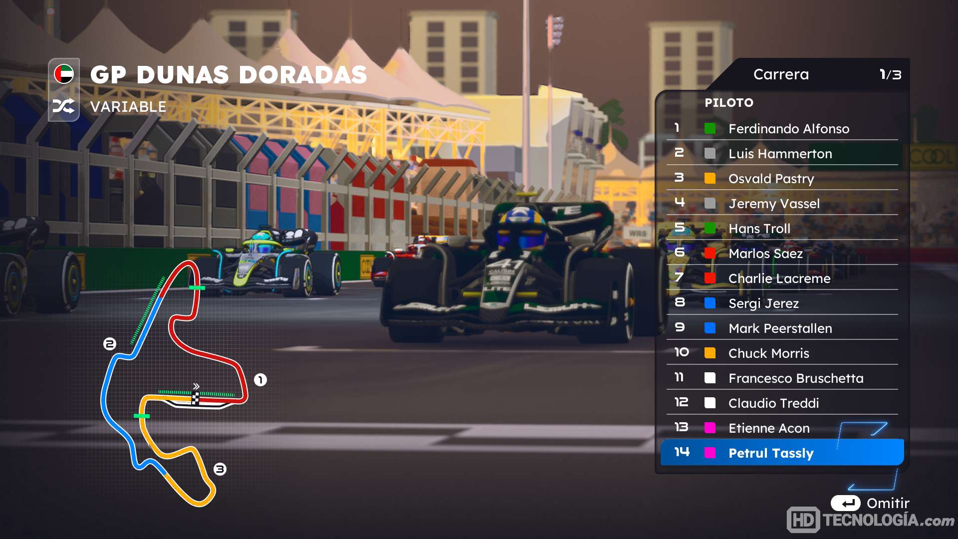 Las decoraciones de los autos, aunque no son oficiales, evocan de forma evidente y cariñosa a las escuderías reales. Correr junto a rivales con nombres similares a Valtteri Bottas o Niki Lauda y lo mismo pasa con las escuderías. Es un juego que apela sin tapujos a la nostalgia, pero lo hace con un toque de humor que nunca resulta forzado.