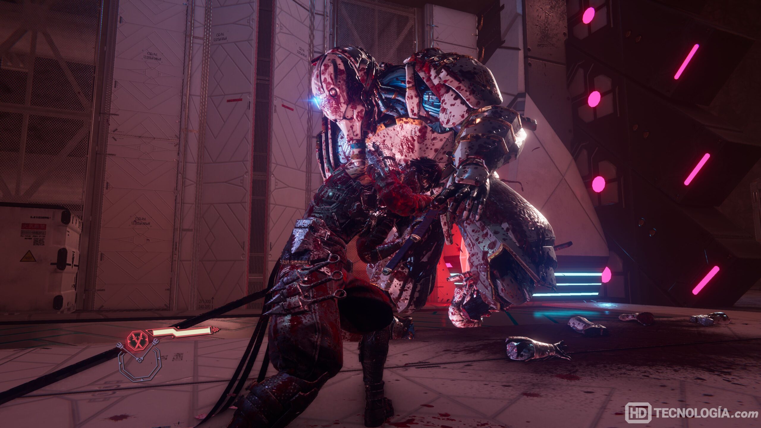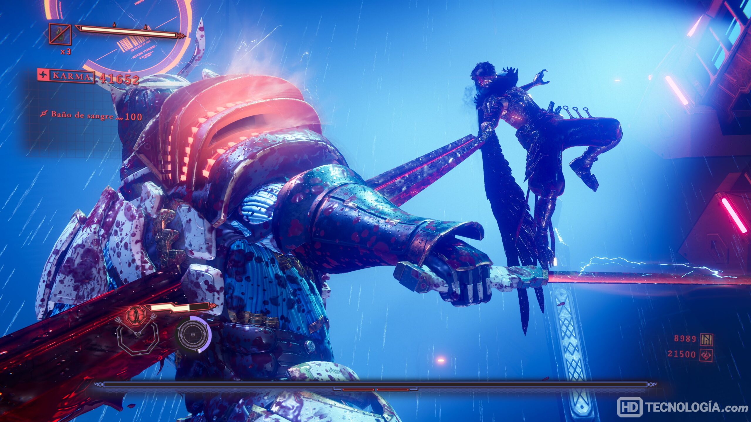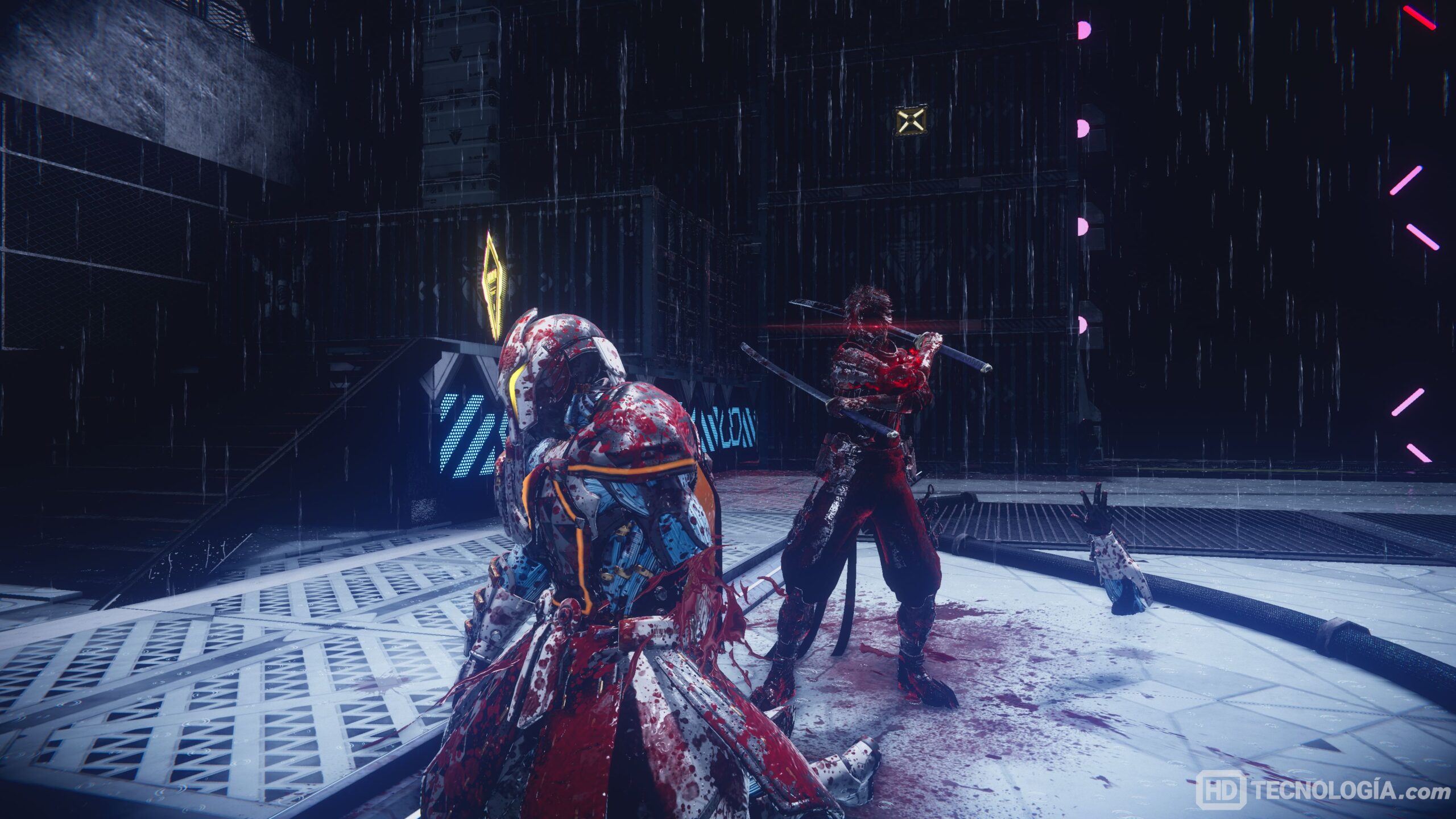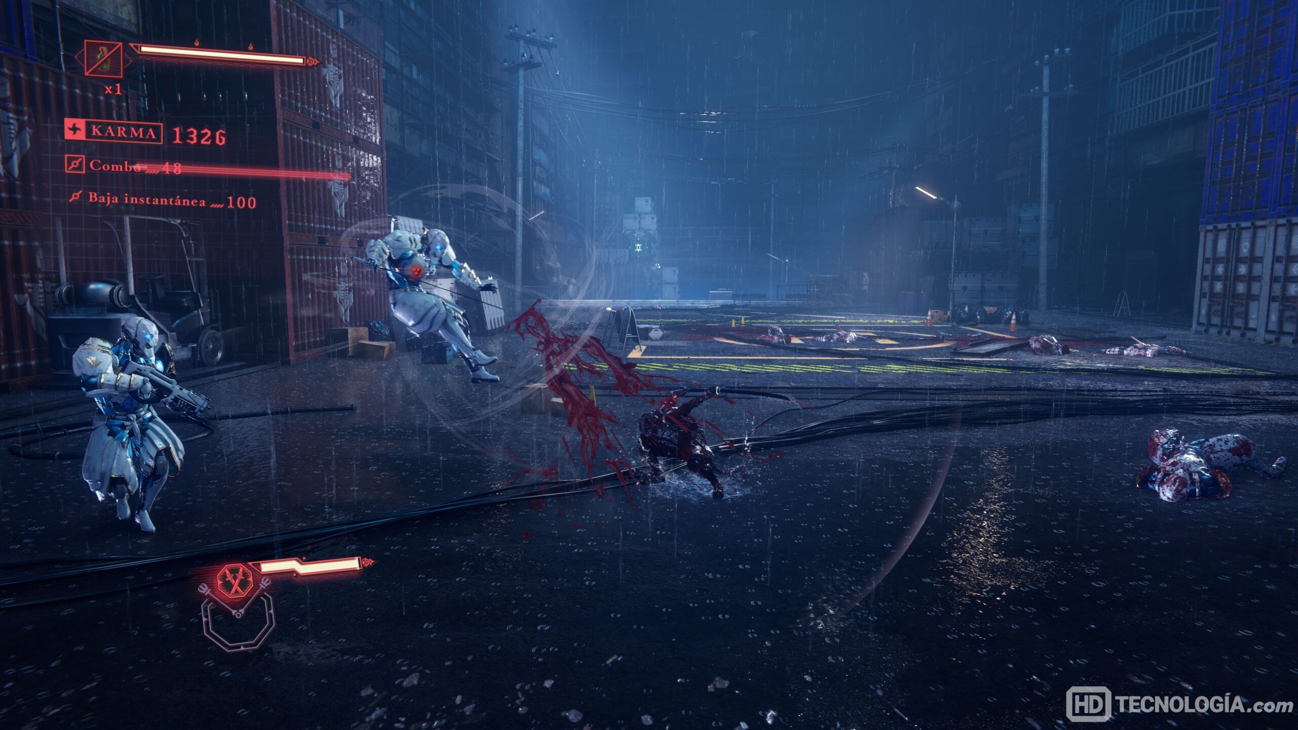 La dirección artística complementa el tono sangriento y veloz del juego, con animaciones impactantes y efectos de partículas que le dan identidad. El audio acompaña bien, cada tajo y cada grito suenan donde deben.