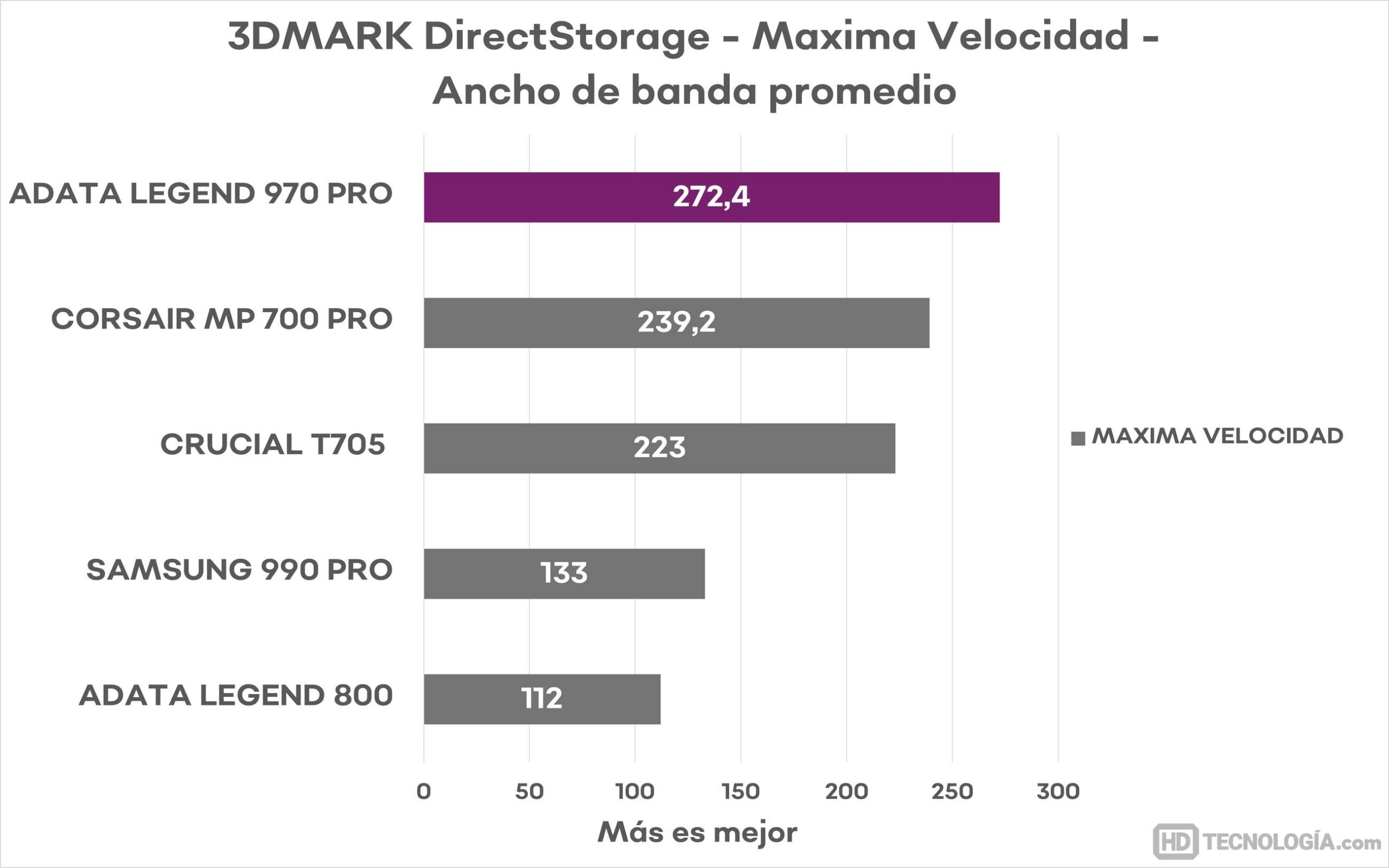 Esta prueba no solo habla del rendimiento bruto, sino de la preparación del Legend 970 PRO para la nueva generación de juegos en PC, donde DirectStorage será cada vez más relevante.