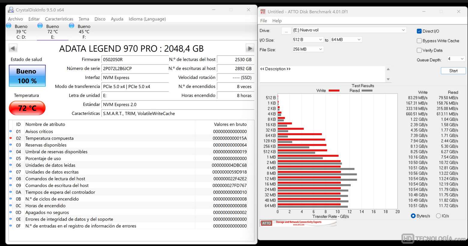 Uno de los puntos claves al analizar un SSD PCIe Gen5 como el ADATA LEGEND 970 PRO es su comportamiento térmico. No es novedad que con el aumento del rendimiento también crece la temperatura, y este modelo no es la excepción.