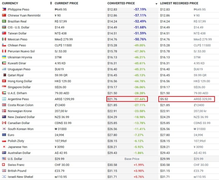 Como si nos argentinos ya no tenemos demasiado con el IVA de 21% y el muy factible impuesto adicional del 30% que entrará en vigencia pronto (probablemente antes de fin de año), ahora tenemos que pagar los platos rotos porque usuarios de Steam alrededor del mundo cambian de tienda en Steam a Argentina para pagar menos sus juegos.